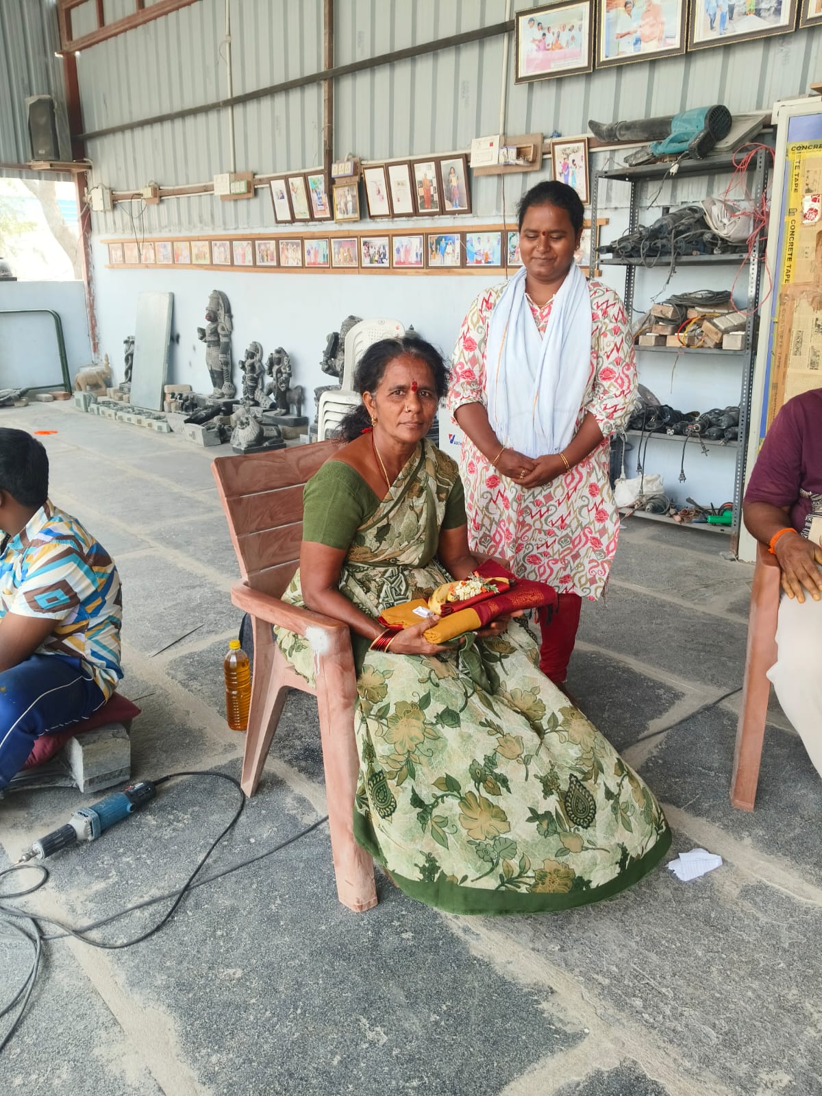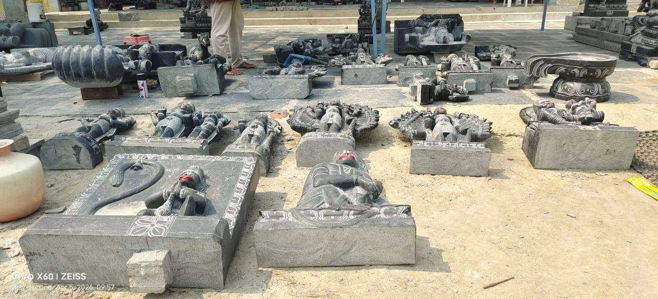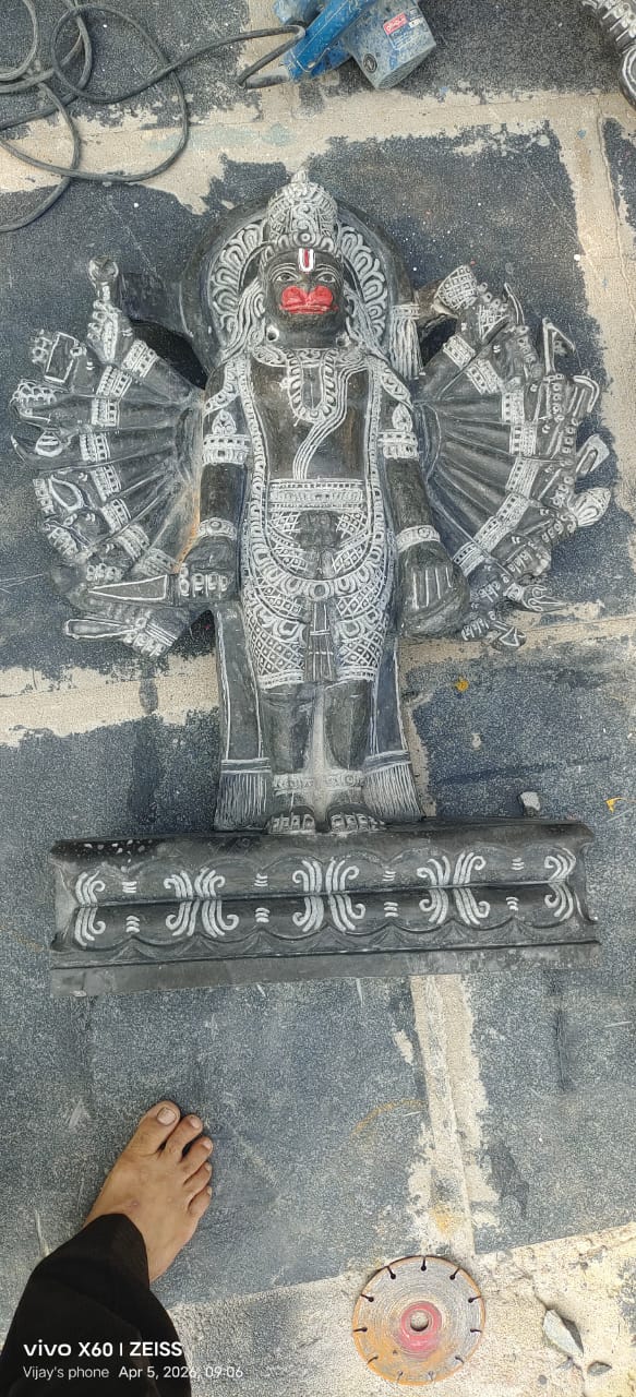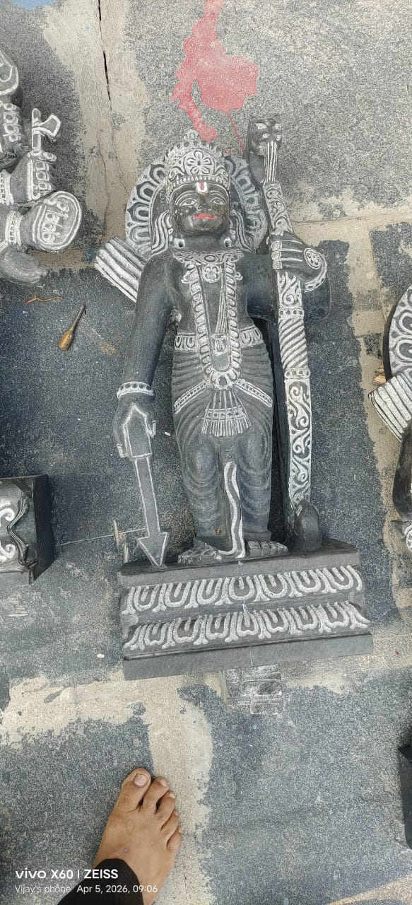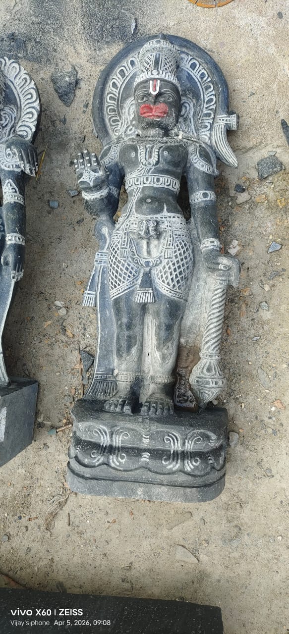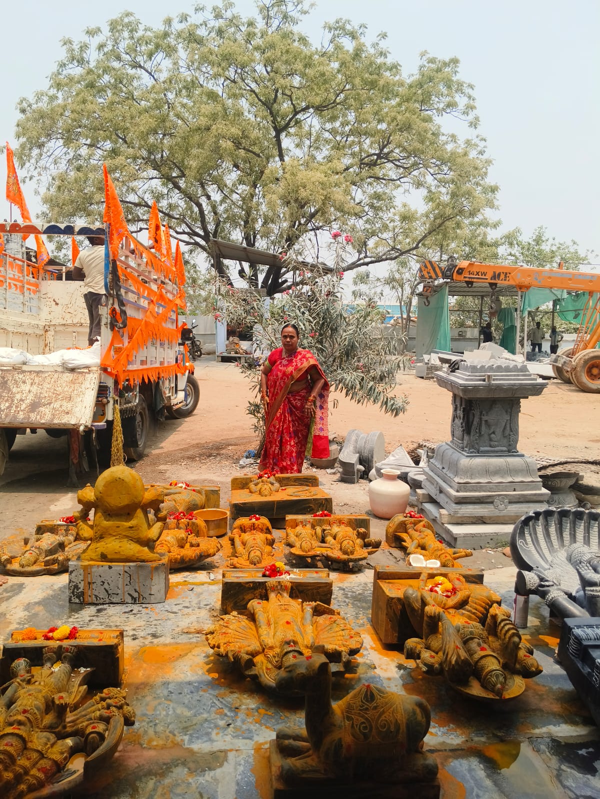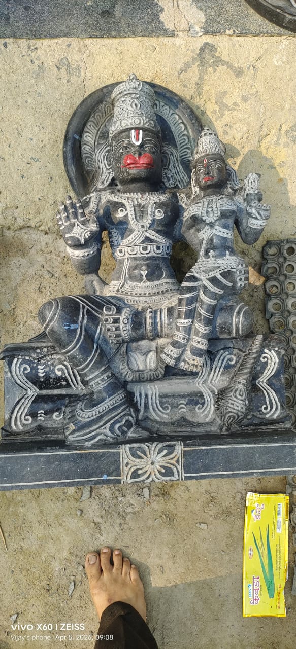 కనమర్లపూడి వీర హనుమాన్ దేవాలయ పునర్నిర్మాణం కోసం శిల్పి నుండి విగ్రహాల ఆగమనం